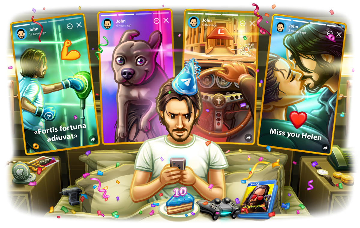 Today, Telegram celebrates its 10th birthday – with our biggest update yet. Over the past decade we’ve built hundreds of new features that are now used by over 800 million people. In this update, we launch Stories – with a unique dual camera mode, granular privacy settings, flexible duration options and much more.